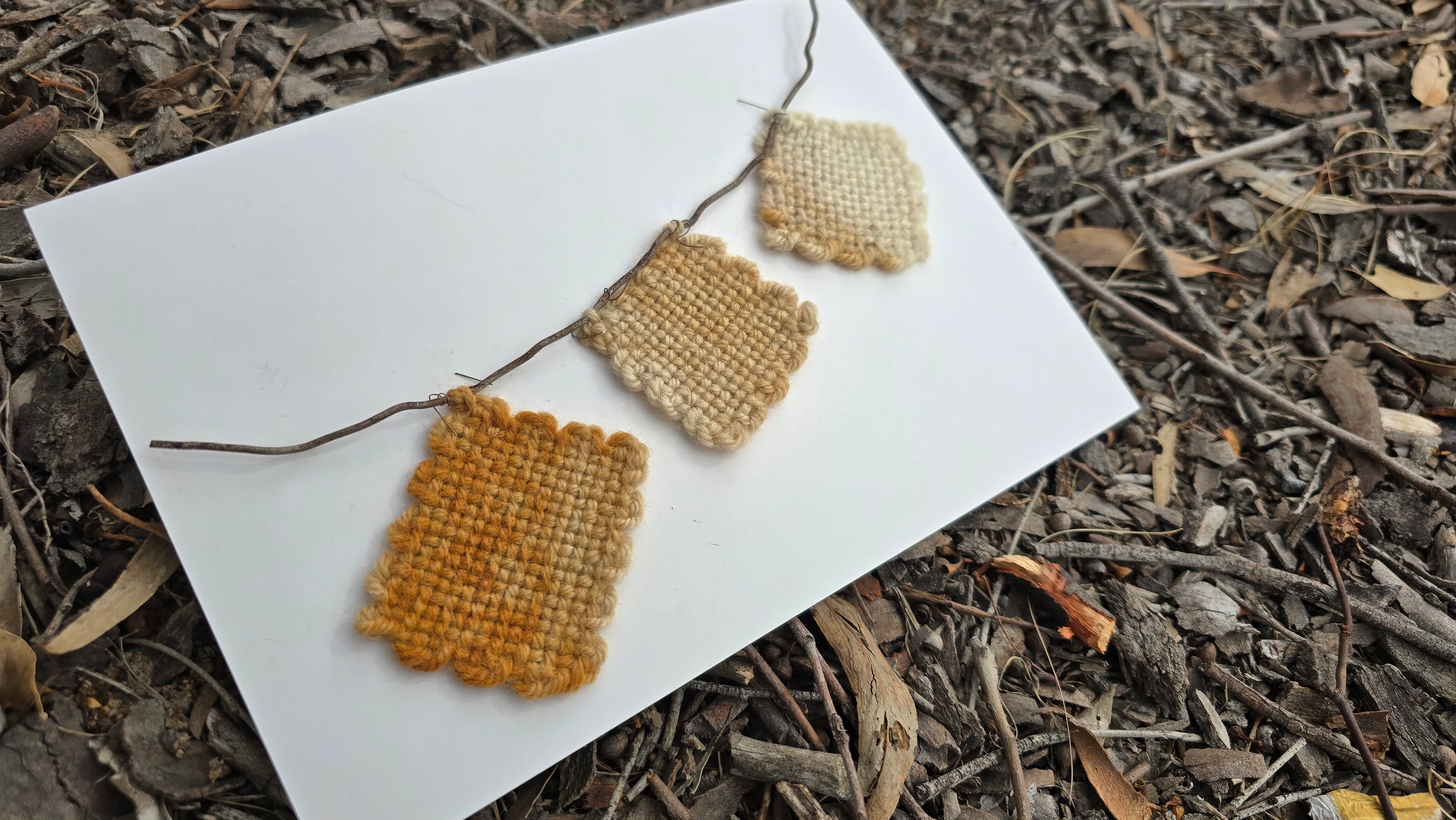 Left for several days, the iron oxide from the rust transfers to the fibre, leaving behind deep, textured impressions where the metal touches the material. The degree of saturation influences how much the colour bleeds, creating soft gradients or strong contrasts. Like the images above. Cotton/ Hemp fabric and woven wool pieces.