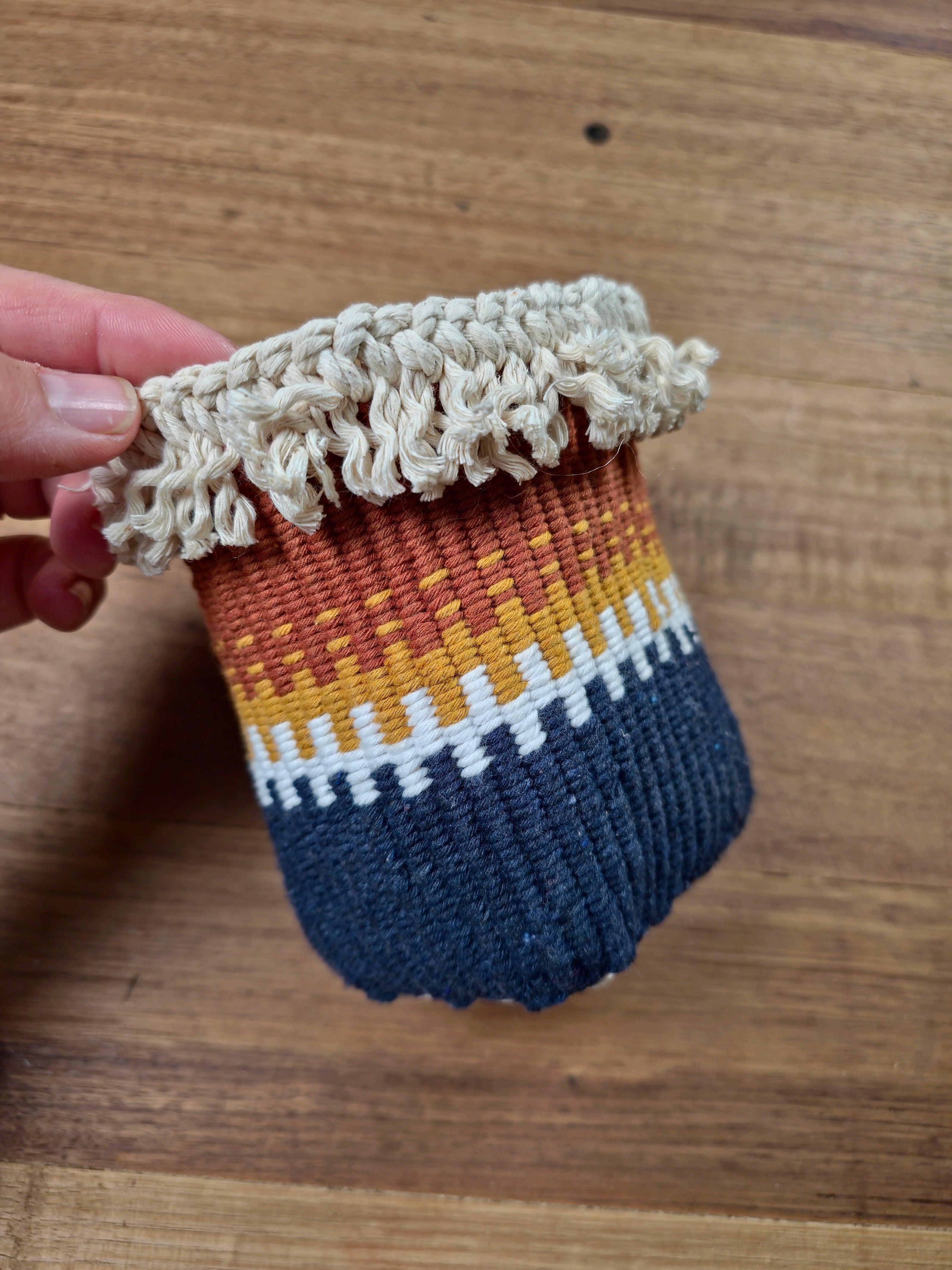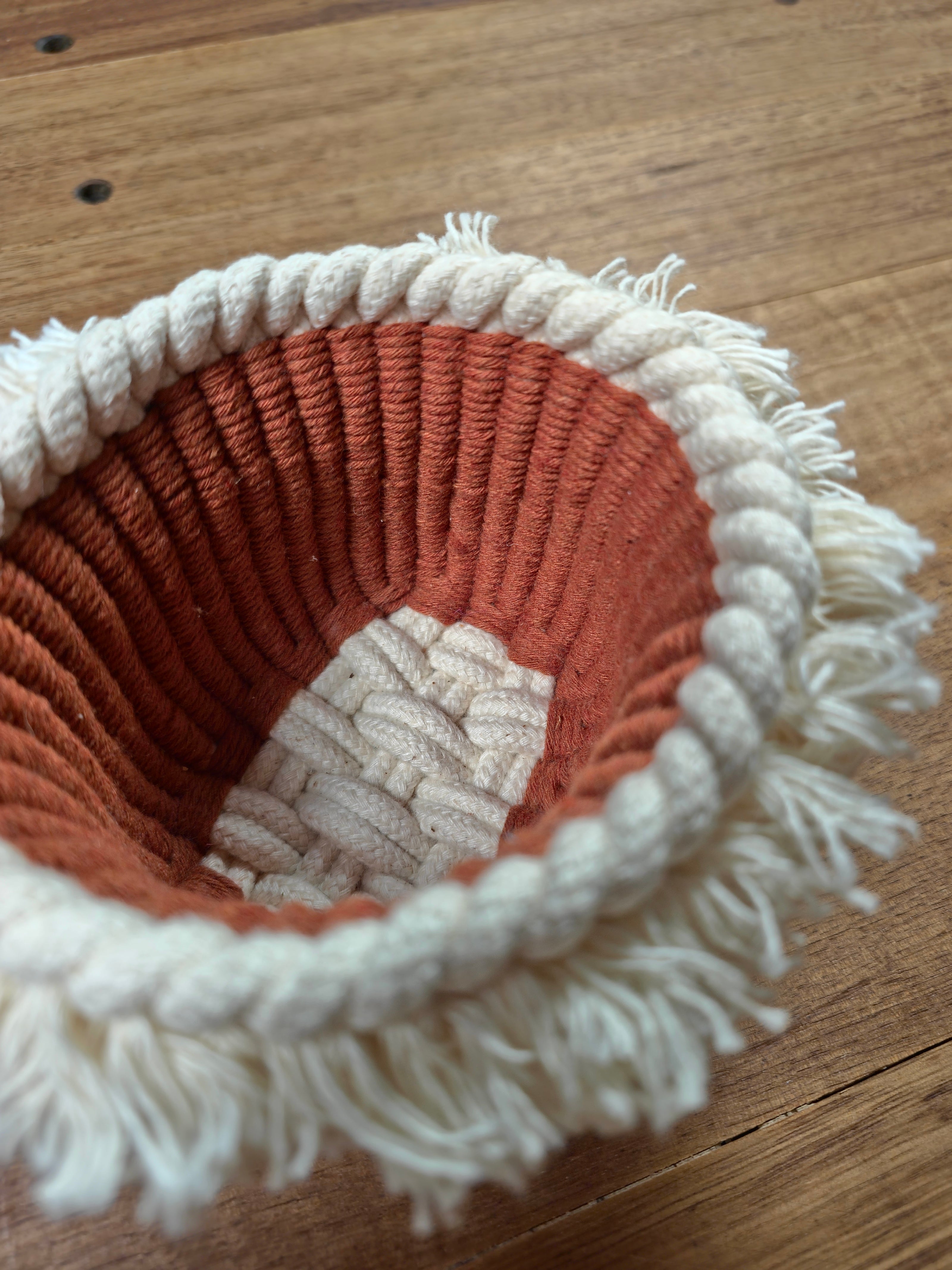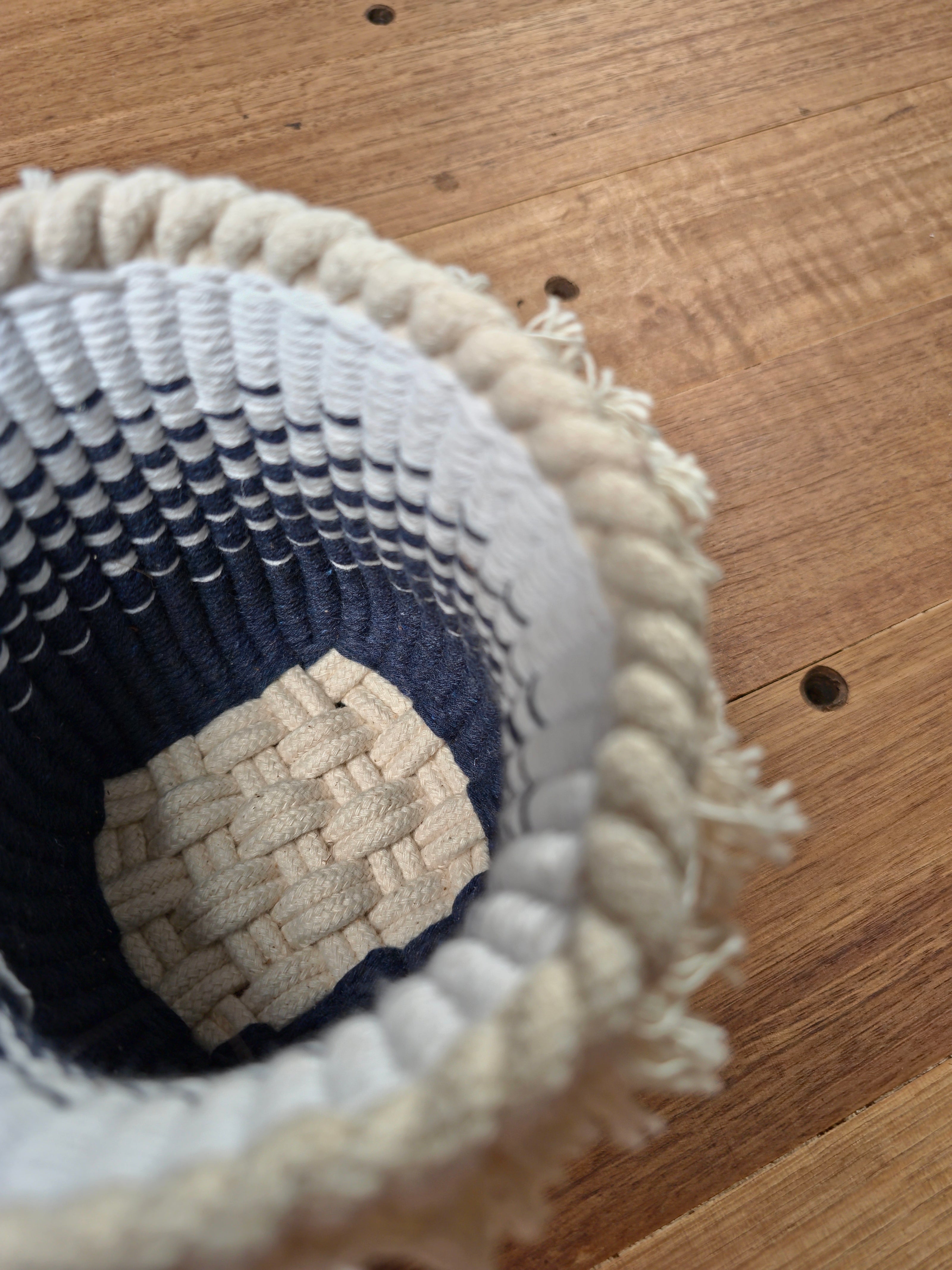 Taking a contemporary approach to the ancient, nature-based craft of basket twining. This is an ongoing experimentation with colour, fibres, and textures to see how far this traditional technique can be adapted.