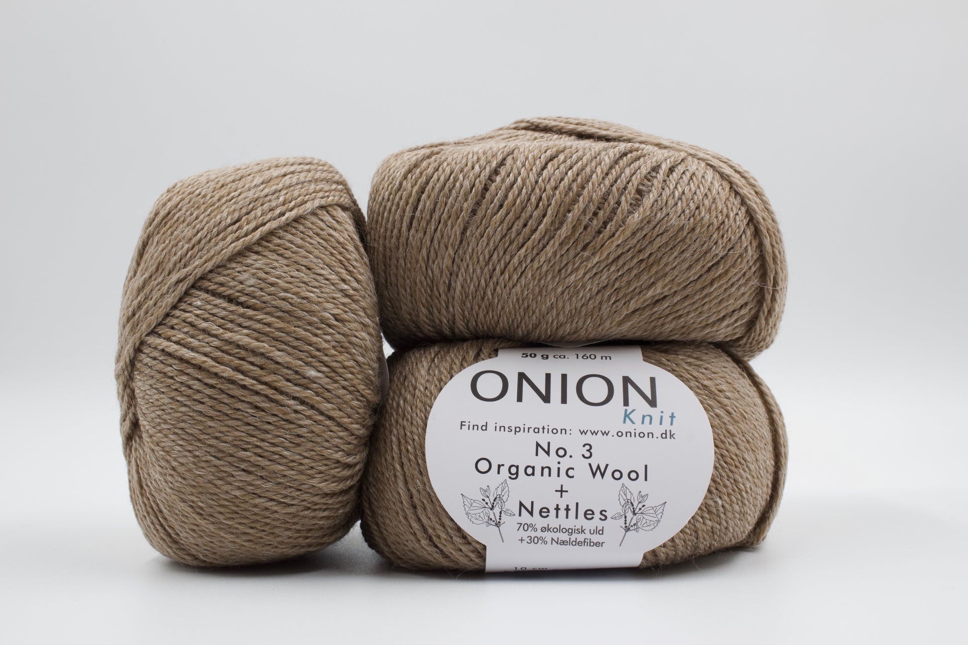 Onion is a company based in Denmark, with a focus on producing quality natural fibre yarn with an environmental sustainable focus. Wool is certified organic, Nettles are sourced from China - pesticide free.